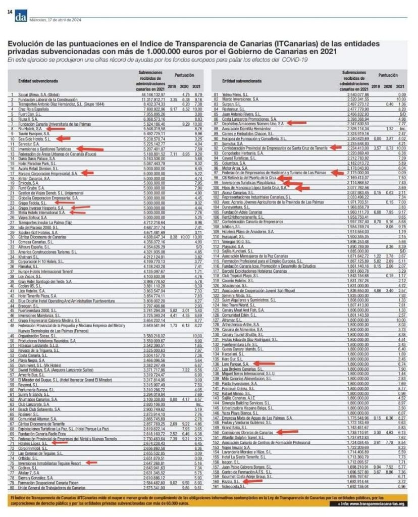 1. Aquí publicamos las SUBVENCIONES (hoy las llaman paguitas) del Gobierno de Canarias, CON DINERO PÚBLICO que se dan a tantísimas empresas privadas. Entre los agraciados, por supuestos están Jorge Marichal (Ashotel), Wolfgang Kiessling (Loroparque) y otros tantos empresarios que no hacen más que quejarse de lo público y de lo mucho que ellos ayudan a la economía…
