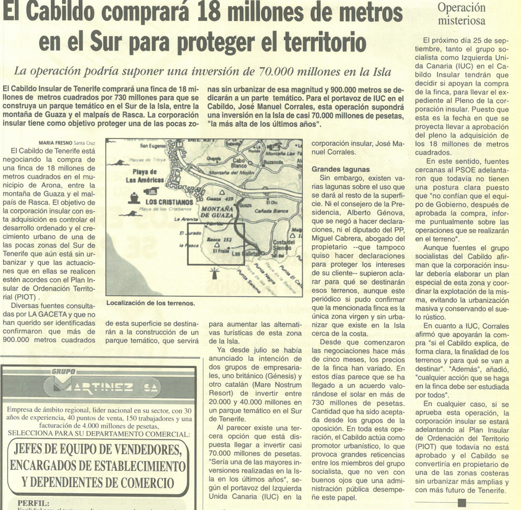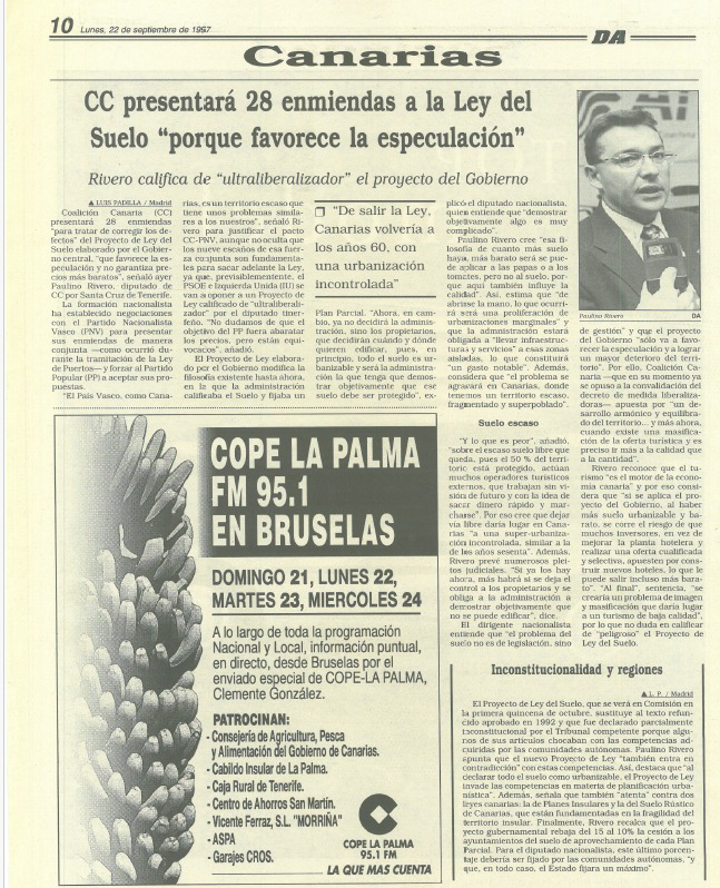 Hace tiempo que no actualizábamos esta sección y ya iba siendo hora. Aquí tenemos a nuestros gestores en Canarias, haciendo gala de su habitual hipocresía. Desde luego más parece una noticia de ciencia ficción o humor que de política territorial. Del año 1997.
